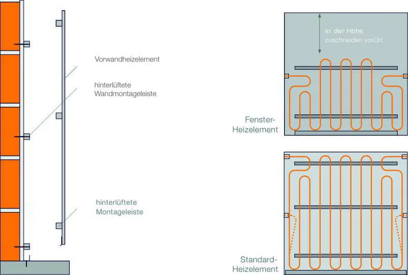 Durch die große Installationsfläche sorgt die Vorwandheizung zusätzlich für eine Mauertrocknung.